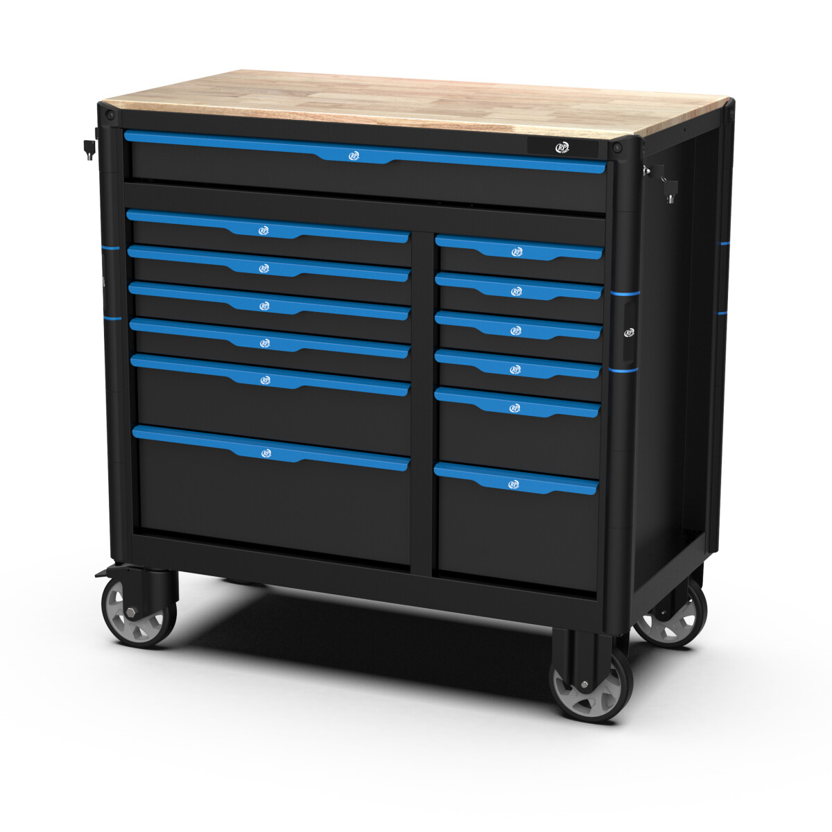 Mit einem Werkzeugwagen wie unserem RP-JJ-W4RMP13B werten Sie ihre Werkstatt nicht nur optisch, sondern vor allem auch organisatorisch auf. Jede der einzelnen 13 Schubladen kann jeweils 20-35 kg locker wegstecken. Die Schubladen befinden sich auf kugelgelagerten Auszugsschienen mit Vollauszug, wodurch ein präzises und leises Ausziehen garantiert wird.